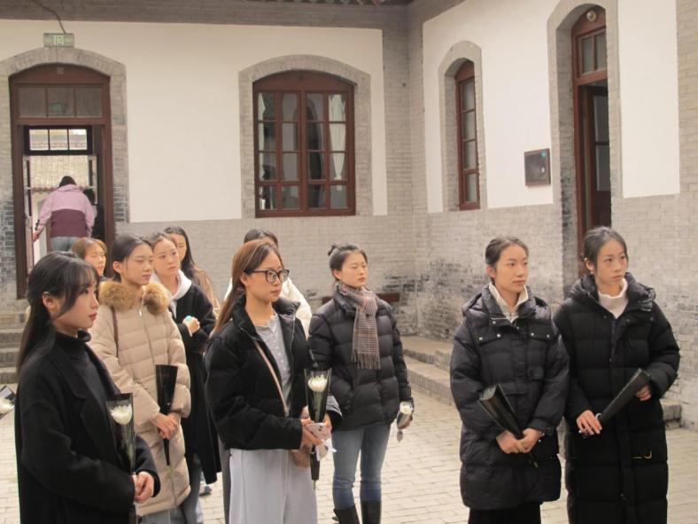 全体同学整齐列队于纪念馆庭院,面向党旗肃立默哀,向为中国革命顽强拼搏、英勇牺牲的英雄先烈致敬。随后,在讲解员带领下,同学们参观了周恩来、宣侠父等革命先辈的旧居及多座历史展厅,一起重温了那段光辉的历史。一张张照片、一件件文物生动还原了“八办”作为“红色桥梁”“红色堡垒”光荣使命。同学们全神贯注,在看到泛黄的书信电报、朴素的起居陈设、简陋的医务室忍不住感叹和感动“革命先辈们真是大伟大了”。