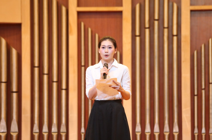 2025届毕业生曹静代表全体受表彰学生发言,分享了参与社会实践、特别是《俑生俑事》排演并荣获“荷花奖”奖的难忘经历,感恩学院提供的沃土和老师们的悉心教导,表示将视此荣誉为新征程的起点,怀揣热忱之心在艺术道路上坚定前行。