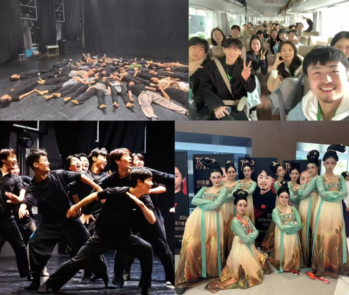 在这四年的大学时光里,我们积极参与艺术实践并且参加2024年中央电视台春节联欢晚会。例如,《红色家书》在第十届陕西省艺术节上精彩亮相;原创群舞作品《心中的信仰》受邀参与第九届丝绸之路国际艺术节;《水边丽人》和《河》参与了陕西省优秀原创作品展演、2023陕西省“荷花奖”终评活动以及2024中国顶尖舞者成长计划全国作品展演,其中,《河》荣获陕西省第七届大学生艺术节专业组一等奖、优秀创作奖、优秀指导教师奖。此外,参演由编导张鹏和李梦雨创作的《俑生俑事》荣获了第十四届中国舞蹈“荷花奖”。