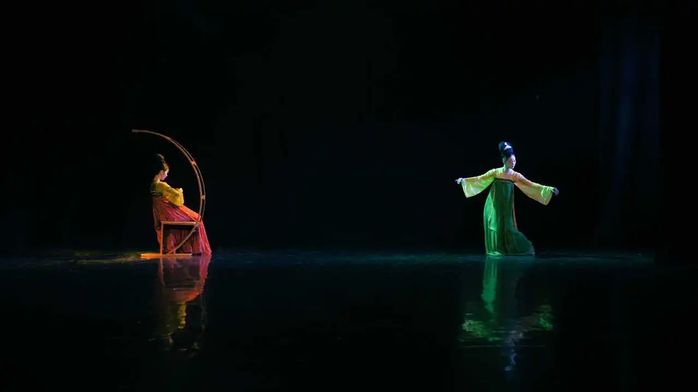舞剧《诗意·诗经》以《诗经》中“赋、比、兴”手法与舞蹈编创思维的相关性入手,借鉴“赋比兴”文学创作的手法、情感性、思想性以及审美特征进行分析,从《诗经》中研究文学创作形象并寻找舞蹈创作题材,结合诗词与舞蹈的共通性,在尊重诗中文本的内涵基础上,加入编导个人的理解与思考,用舞蹈思维进行舞蹈化的解读与重构,以“赋”为情感的起点,由此再发展到“比”借形喻意,最后进入“兴”营造的意境。