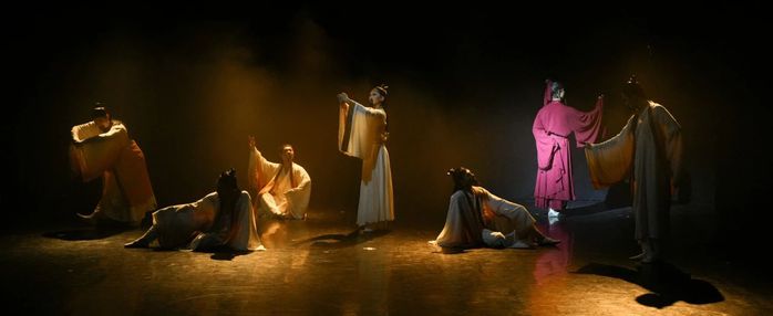 小舞剧《广陵绝响》将“竹林七贤”代表人物之一嵇康作为核心人物,并借以当代“嵇康”的视角开启古今时空的交流与对话,重塑琴曲《广陵散》的绝响之因果。舞剧以多重叙事语言的探索创新为目标,以鲜活的士人艺术形象为载体,通过竹林七贤的群像与嵇康典型性形象事件的交织构建,以舞蹈形塑中国士人高尚的情操和高洁风骨。