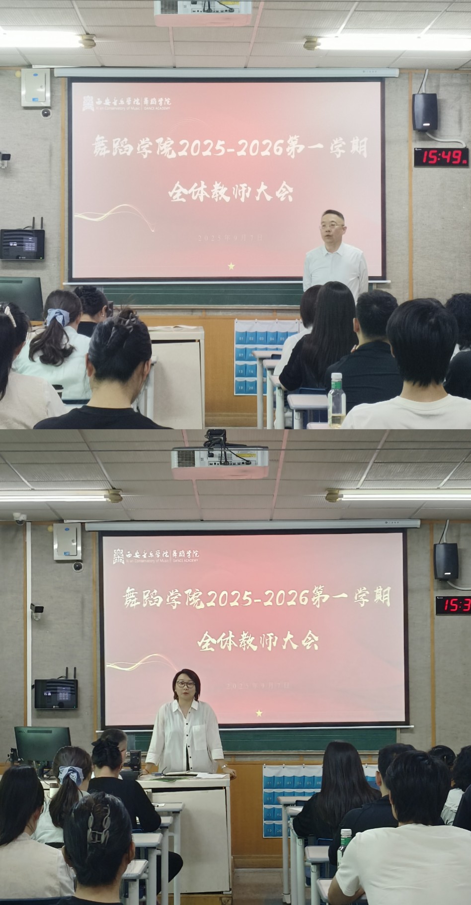 9月7日下午15:00,西安音乐学院舞蹈学院2025-2026学年第一学期全体教师大会在学院4-303教室隆重召开,为新...